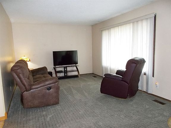 RANCH 3 bedroom, 2 bath. Updated tilt-in vinyl windows thru-out. Vinyl siding on house. Large eat-in kitchen features updated cabinets, high end vinyl floor & stainless steel refrigerator. Bathrooms have ceramic tile floors. Brand New carpet in living room and bedrooms, nice thick pad, soft on the feet! Deck + patio. Huge backyard with privacy fence and a fire pit to gather around on those summer nights and roast marshmallows! Over-sized 2 car garage (has a bump out in back, called a "dog house" for additional storage or a work shop) Basement is partially finished with side walls and ceiling. And the pool table stays! Updated furnace, central air and water heater, new sump pump. All appliances included fridge, stove, built-in microwave, washer and dryer too. Quick Possession! CONTINUE TO SHOW SELLER WILL ENTERTAIN BACK-UP OFFERS.