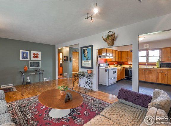 Charming & private mid-century modern in perfect condition. 2-car attached garage & 2-car detached garage/shop/studio on a .45 acre treed lot. Gorgeous landscaping w/raised beds, berm, fence, auto sprinklers & well water. This immaculate ranch has plenty of room plus a fully finished basement with its own kitchenette. Other amenities include window coverings, appliances, refinished wood floors on main floor, no HOA, and close to Old Town.