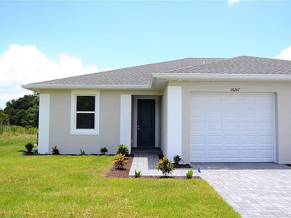 Perfect investment opportunity or the perfect solution for those families who want (or need) to live close to each other. Live in one side and rent out the other for $1750.00 and it pays your mortgage. This is a brand new 2 family duplex located in the highly desirable Deep Creek Section 23 deed restricted community in Punta Gorda and comes with a one year builders warranty. You will love the spacious open/split floor plans in each unit with 3 bedrooms, 2 bathrooms and attached single car garage. Tile floor throughout home for easy maintenance. The kitchen features granite counter tops, stainless steel appliances, breakfast bar with stylish hanging lights, hard wood soft closed cabinets and drawers, pantry closet and is open to your living/dining area with sliders out to a 9x17 screened in lanai. Master suite showcases walk-in closet, granite counter his and her sink area and large walk-in shower. Family and friends will appreciate two additional guest bedrooms along with an incredible full guest bath and granite counter- top vanity. Laundry room with additional closet space leads to a nice sized garage. Home also features 9'4" ceilings, 8' oversize garage door, irrigation, energy efficient HVAC system, and brick paved driveway/pathways and nicely landscaped. This beautiful duplex sits on a half acre lot with plenty of room in the backyard and a wooded view. Deep Creek Golf Course and Pro Shop is a short walk away. Easy access to I75/US41. See also Income MLS# C7445977.