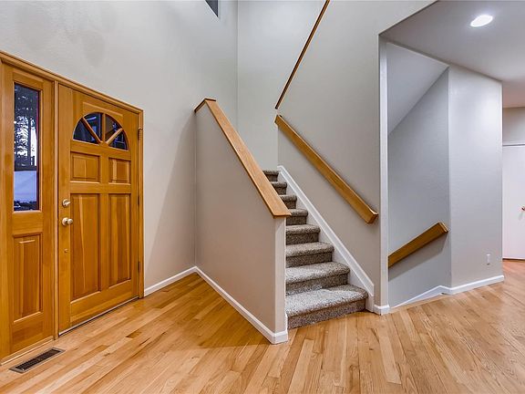 Immaculate, one-owner home! Backs to a gorgeous, private forest. Desirable layout includes an upper level master suite and huge 5-piece bathroom / walk-in closet, 2 bedrooms with jack-and-jill bath, and loft area suitable for a desk or toys. Main level formal dining room, eat-in kitchen, gas range, cozy gas fireplace and soaring great room. Your walk-out basement has high ceilings, river stone fireplace and custom wood built-ins, 4th bedroom, full bathroom, and abundant storage. The fresh interior paint and new carpet are the cherries on top. Enjoy paved roads, Evergreen schools, and an easy commute to the city. Don't miss out on this opportunity to call this stunning house yours!