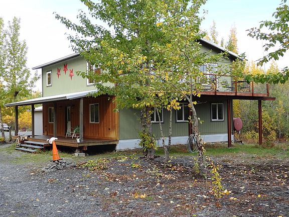Nice 3 bedroom home w/ great Knik Glacier & surrounding mountain views on 5 private acres. Metal roof, large deck, hickory cabinets, new carpet, great B&B potential w/ 1 dry cabin ready to rent. Close to many recreational opportunities near Knik Glacier & River. 3 heating sources (Fireplace, Pellet stove & Oil Monitor)! Adjoining 5 acres w/ airstrip access available. Vacant land trade considered.