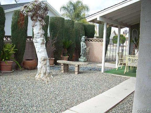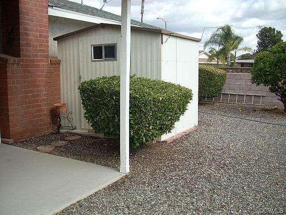 Lovely home in the Popular Presley 55+ senior community of Sun City, CA. Amenities include swimming pools, work out room, workshop and endless activities for entertainment. The home features 2 bd, 2 ba with another room used as office with plenty of shelves. Open living room, fireplace, formal dining room, easy access to outside patio . Kitchen has laminated counter tops, ceiling fan, vinyl floor in kitchen, electric stove, stainless steel sink, garbage disposal and white cabinets. Master bedroom with walk in closet, master bath has marble counter top and office area. Linen closet in hallway. 2 car garage with plenty of shelves for storage. Home is a corner lot , nice backyard, shed for storage, fruit trees, cactus plants and cypress trees. Sprinklers are in the front, back and side yards.Less than 2 miles to the 215 freeways, north or south. Shopping centers, medical facilities, golf courses and Sun City Civic Center. Great for retirement.
