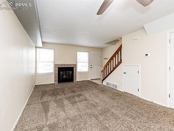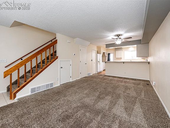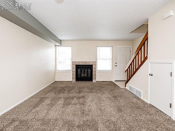 This beautiful, two-bedroom, two-bathroom, 2-story move-in ready townhouse is in pristine condition. Includes one assigned carport parking right in front of home and plenty of guest parking spaces around. Renovations include new gorgeous updated bathrooms you won't want to miss. Enjoy the Mountain view directly from the Master bedroom, with a huge closet, built-in shoe rack with extra storage. Newer carpet all throughout the home. The kitchen offers so much cabinet space, with a spacious pantry, included appliances, plus washer and dryer stay. New light fixtures with especial affects in the kitchen you're going to love. The breakfast bar is perfect to enjoy being part of the kitchen activities or just hanging out. Sit in front of the cozy wood burning fireplace and enjoy the views from your backyard deck. Talk about LOCATION! D20 Schools, walking distance to the Elementary and the Middle school bus stops right on the corner of Briargate and Bannister, shopping centers, Chapel Hills Mall, Military Base, library, restaurants and so much more!