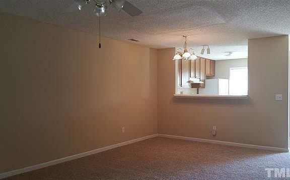 Easy access to 440 and 540! Nice 2 bedroom town home with brand new carpet throughout! Open kitchen with cut out to dining and living area. Large living room with cozy fireplace. Nice size second bedroom with private bath and generous size master bedroom with very own small deck! Private patio in back. Application fee is $55 per person.