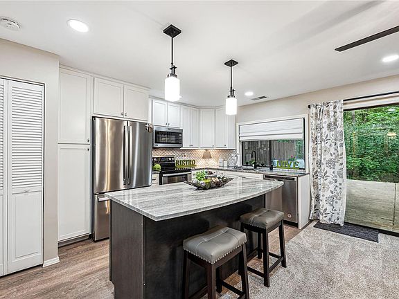 This charming patio home has 3 bedroom and 2.5 bath, attached side-entry 2 car garage. Inside space has open-concept layout, highlighting the serene views. Freshly painted thru out & main level has newer carpet. An inviting island seamlessly connects to the hearth room, creating a cozy gathering spot. The main level, living room, dining room, hearth room kitchen, main floor laundry, & updated powder room. The updated kitchen, has White Shaker Cabinetry featuring soft-close technology, neutral granite countertops, backsplash. Upstairs has a grand owner's suite, complete wi/private balcony, perfect for morning coffee or evening sunsets. Sliding doors off the kitchen, blur the lines between indoor & outdoor living, enjoy the tranquil surroundings. Indulge in the ease of living & fall in love with the peaceful ambiance this home offers. Welcome to your new sanctuary – where every day feels like a getaway. Enjoy the serenity! Location: Ground Level, Suburban