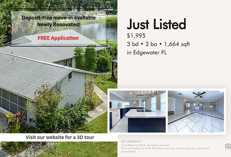 ** New listing with 10 Stars Property Management ** Beautiful 3 beds 2 baths is available for rent in Edgewater, FL. 2629 Mango Tree Drive, Edgewater, FL 32141 is situated in a scenic area with several nearby attractions. You can explore Samsula Dunes Park for nature trails and wildlife viewing, or visit Edgewater Riverwalk Park for a scenic stroll along the Indian River. The Canal Street Historic District in nearby New Smyrna Beach offers quaint shops and local eateries. For beach access, New Smyrna Beach is just a short drive away, boasting beautiful sandy shores and vibrant beachfront activities. Major roads like US-1 and I-95 are conveniently close, providing easy access to surrounding areas. The proximity to Spruce Creek Park also offers outdoor recreational opportunities, including kayaking and fishing. 3D Tour Available: FREE APPLICATION Features: - Application fee will be credited back on the 1st month of rent if approved - Waterfront location for a serene and picturesque view - Corner lot for added privacy and space - Large driveway for convenient parking and easy access - Tons of natural light for a bright and uplifting atmosphere - Open connected living and kitchen space - Elegant tile flooring throughout the living and kitchen area - Cozy fireplace for those chilly evenings and a warm ambiance - Fully equipped kitchen with appliances to inspire your culinary creations - Center island for additional prep space and casual dining - Dishwasher for hassle-free clean-up after meals - Luxurious master bedroom with its own master bath and spacious walk-in closet - Two screened patios for enjoying the outdoors without the bugs - Fenced backyard for privacy and a safe play area for kids or pets - Bathtub for relaxing baths after a long day - Stand-up shower for a sleek and modern bathroom experience - Ceiling fans for optimal airflow and climate control, plus window coverings for added privacy - Tenants are responsible for paying all utilities Pets are allowed. No more than 2 pets per property. Weight limit of 55lbs per pet. No aggressive breeds. Applicants must complete a free pet application and have animal approved with vaccination record. The monthly pet fee will be determined by your pet screening score. Does not apply to medically/emotional support prescribed and/or service animals. At 10 Stars, we offer multiple services to make your stay with us easy and comfortable. We have a same-day application approval and a quick move-in for no additional cost. Our team is professionally trained and will be able to assist with any leasing, billing, or maintenance issues our tenants have. We also offer an emergency line available 24/7 for any urgent cases. Tenants have access to an online portal where they can make rent payments, communicate with our team and get updates on their payments and maintenance requests at all times. THE FIRST MONTH AND SECURITY DEPOSIT ARE REQUIRED We do offer a TENANT BENEFIT PACKAGE and a DEPOSIT FREE MOVE IN. Renter's insurance is required prior to moving in. Rules and Regulations are on our website! Only $65 non-refundable application fee per adult with 10 stars property management