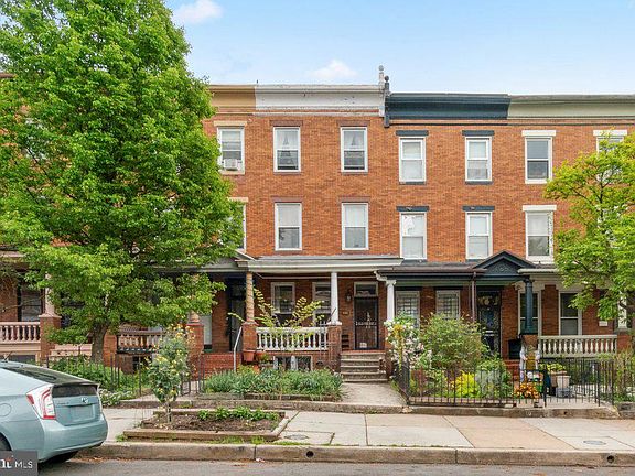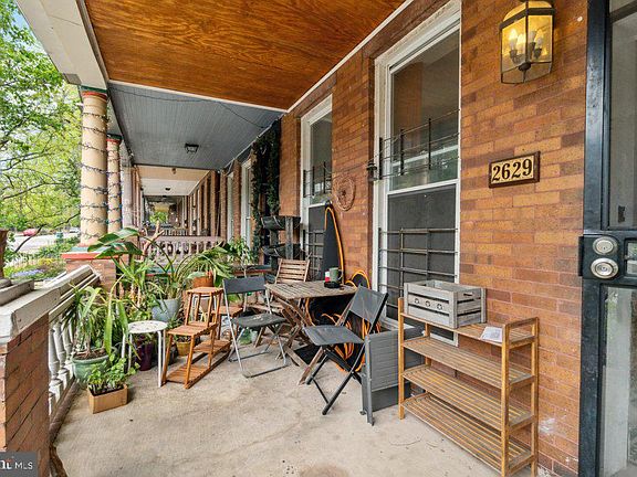 The interior of the home is elegantly designed with a blend of wood cabinets, featuring both butcher block and laminate countertops, complemented by a 30” electric range and a porcelain sink. The bathrooms are updated with modern vanities and steel tubs encased in ceramic tile surrounds. Aesthetic appeal is heightened by plaster walls with high ceilings adorned with chandeliers, along with touches of exposed brick adding a rustic charm. The living and dining room boast hardwood flooring, while the kitchen and bathrooms are outfitted with brick-style ceramic tile flooring for durability and style. For added convenience, there is a full-size washer and dryer located on the first floor. Located a short 5 blocks from Johns Hopkins University Homewood Campus, 2629 N Calvert Street is within easy walking distance of campus, Wyman Park, and the 25th Street commercial corridor. 25th Street is home to many small shops and restaurants, including Safeway, Garnering the title “Walker’s Paradise”, 2629 N Calvert earns a 92 Walk Score, a 66 Transit Score, and an 86 Bike Score. This block is served by the Charles Village Benefits District. This nonprofit organization helps keep the district clean, organizes security patrols, and hosts community events.