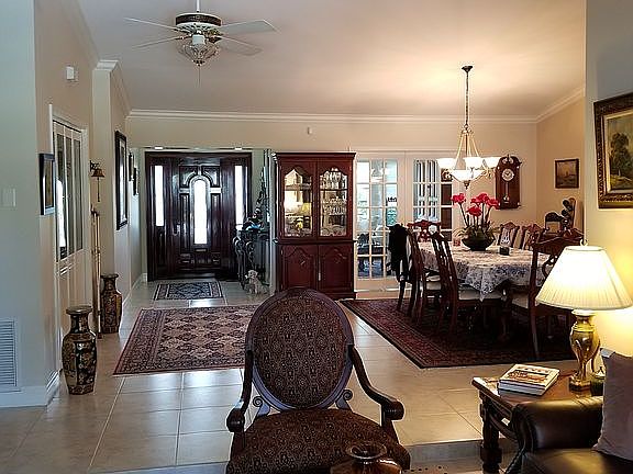(Please note corrected phone number) Unique one-of-a-kind architecture West Lakefront ranch style home in desirable New Floresta neighborhood. Great family home in the best school district in South Florida, a quiet and low-key neighborhood. 5 bedrooms, or 4 bedrooms and an office, 3 1/2 bathrooms. A second bedroom has an en-suite bathroom for guests or a second master. Dual 16 SEER air conditioners for efficiency and better cooling, air handlers not in attic. 2 floored attics for storage. Kitchen with granite surfaces and tall maple cabinets opens to family room. Framed windows, front Andersen casement windows, side and rear factory tinted PGT windows, oil painted crown molding and baseboards. 3 unibody Kohler toilets, one large American Standard. Split floor plan separates all bedrooms. Easy entertaining with a roomy dining room and living room. Unique gated large side concrete enclosure for trash cans, hose, triple tinted patio with extra poured concrete extension for Spa or addition, Etc. Priceless inner community location with low traffic provides quiet and safety. Quality CBS Construction, sole occupant. Buyer's agents welcome! * (sidewalks to be redone by the city shortly) Please call 561-302-1954.
