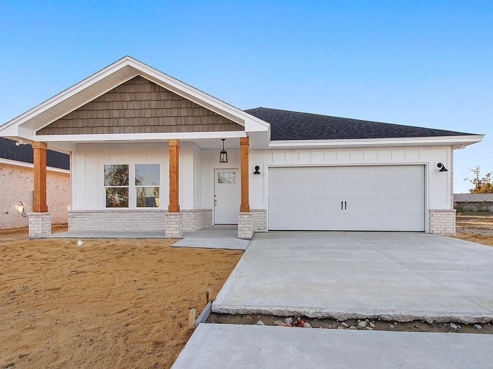 New construction being built with custom finishes and attention to detail throughout. Home will be completed in 2 weeks, ready to call home right after the holidays. Features 3 bedrooms, 2 full bathrooms, and a bonus room. The front bonus room has double doors and can be utilized as a office, den, or playroom. Upgrades of 9' ceilings throughout the home. Solid wood cabinetry, quartz countertops, expansive kitchen island, farmhouse sink, walk-in pantry, & stainless steel appliance package, including refrigerator. Crown molding in Main Living area. Great Room features tray ceiling with crown molding. Main Bedroom suite features a double cultured marble vanity, garden tub with separate cultured marble shower, & spacious walk-in closet. Large covered back porch that is perfect for Vinyl plank waterproof flooring throughout. LED recessed lighting and upgraded fixtures with ceiling fans. Yard is to be fully landscaped with sprinkler system. Measurements are approximate, if important to buyer please verify measurements. All information contained herein is believed to be accurate and true however the buyer assumes complete responsibility to verify all information. PLEASE NOTE: HOUSE IN PICTURES IS NOT EXACT HOUSE BUT ONE SIMILAR TO IT.