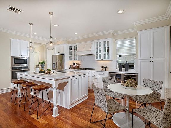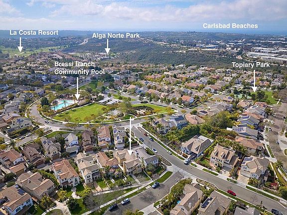 Beyond your doorstep, the best of Bressi Ranch is just a short stroll away. Pick up fresh ingredients at Trader Joe’s, Sprouts or Stater Bros, then explore the vibrant shops and dining of Bressi Village. Charming tree-lined streets lead to lush neighborhood parks—perfect for an afternoon picnic or a sunset walk. Step inside and feel instantly at home. A highly sought-after layout offers a private downstairs bedroom with a full ensuite bath—perfect for guests or multi-generational living—along with a convenient first-floor laundry room to simplify your daily routine. At the heart of the home, the bright and airy kitchen showcases on-trend quartz countertops with full backsplash that beautifully complements the elegant white cabinetry, while stainless steel appliances add a modern touch. Thoughtfully designed for both style and function, this space features convenient beverage coolers to keep your favorite drinks perfectly chilled. An oversized center island invites casual mornings over coffee, and lively evenings filled with laughter and conversation. Upstairs, a sunlit loft welcomes you with gorgeous custom floor tiles, built-in shelving, and French doors that open to a private balcony. Whether you envision a spacious home office, a playroom, home theater or a personal gym, this versatile space is ready to bring your vision to life. The quintessential white picket fence frames the large front yard, creating an inviting space. With plenty of room to run and play, this expansive yard offers endless opportunities to toss a ball with the kids, enjoy a game of catch on a sunny afternoon, or simply relax from the comfort of your cozy front porch. Just steps away, enjoy exclusive access to the upscale Bressi Ranch Pool & Clubhouse—unwind in the spa, lounge poolside or gather with friends for an evening BBQ while cozying up by the outdoor fireplace. Just minutes away, you'll find top-rated schools; Poinsettia Elementary and Pacific Ridge School. When adventure calls, Carlsbad’s pristine beaches and the excitement of Legoland are only a 10-minute drive away, offering endless opportunities to embrace the coastal lifestyle.