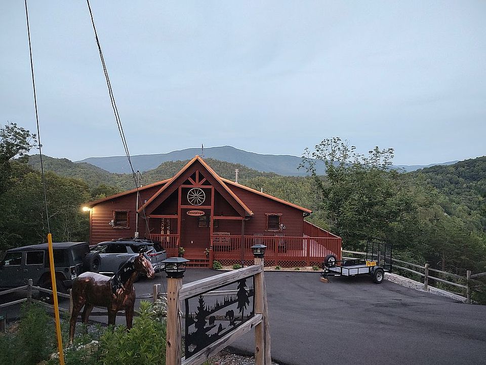 Magnificent View of the mountains. I build this Cabin for my personal vacation home. It would make a great income property. Potential income, $ 175,000. A year. The 1st floor has beautiful kitchen cabinets with granite countertops and a double copper sink. A granite island made from a beautiful price of furniture. All windows have plantation blinds. Marvin windows. French doors in both master suites and great room. The downstairs has a private entrance. A full equipped kitchen 1 master suits and another bedroom with private entrance. Air is state of art with metal duck work. 3 decks with a full view of the mountains. The basement is huge and well insalated with great lighting in each room.. Too many upgrades to metion. This could be your vacation home with a income. I am selling because it turned out to be to big for me. The two (2) kitchens will be fully furnished with everything you need to have a meal. All rooms will be furnished with some new and some used furniture. All nice. I also have a large very convenient laundry room with a new washer and dryer and a large pantry. Laundry room also has a nice large sink. The downstairs also has a washer and dryer. Two living spaces. Bathroom showers on main floor are very large and all tile. Just bring your tooth brush. This was my dream Cabin. Now it can be yours.