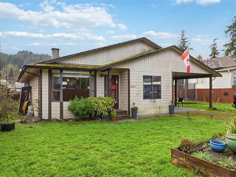 Welcome to 2629 Sooke Rd! Do not miss this opportunity to get into a single-family detached RANCHER home with a garage, carport, plenty of parking and a massive back yard! Enter inside to find a functional layout offering your spacious kitchen with dining area, large living room with wood burning fire insert, 2 spacious bedrooms, a very large laundry room and a huge bathroom that has room to create a primary bedroom ensuite bathroom! This home has skylights that bring in natural lighting. Backyard is SOUTH FACING for maximum sunshine! This home is in the Happy Valley Elementary School catchment. This property is fully fenced with a gated entrance. Enjoy being located walking distance from all amenities including Schools, Restaurants, Shopping, Galloping Goose Trail, Pubs, Liquor Store, Convenience Store and so much more! Do not wait, book your showing today!