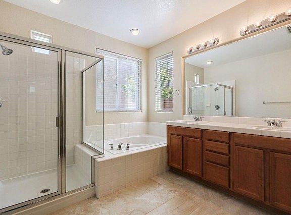 I am Gorgeous inside. Come see me, 12 years young, light and bright with high ceiling, 3 bedrooms and loft/Den and 2 bathrooms. All three bedrooms are on the first floor/ lower level, the loft/den is on the second floor. New interior paint and new laminate floors in living room, kitchen and family room. Family room with gas fireplace with a new faux log, new laminate floors ,new ceiling fan, and 4 new ceiling speakers. New carpet in the 3 bedrooms and the loft. Both bathrooms with new tile floors. One of the bedrooms is a master bedroom with walk-in closet and a master bath with a double sink, sunken tub and a standup shower. Two car garage with new garage door motor.