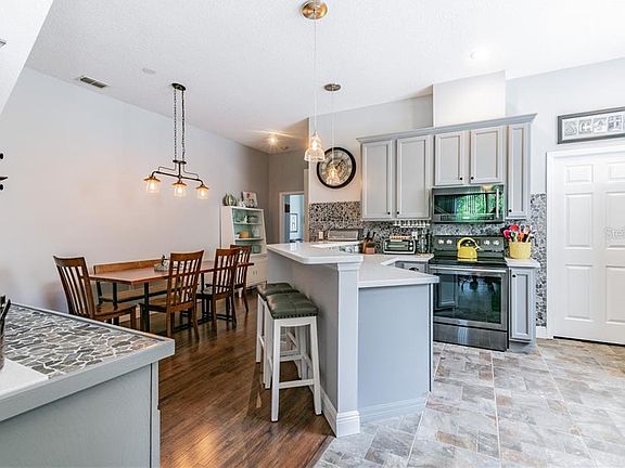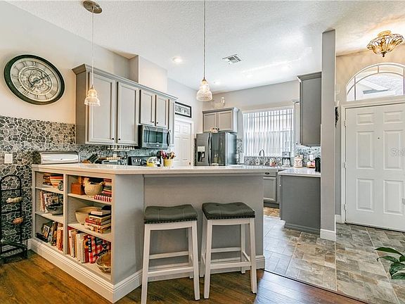 A picturesque 4 bedroom home near Mitchell High School with GROUNDS MAINTENANCE and a Community POOL ... at this price ... with this pride of ownership ... is a RARITY! Many thoughtful UPGRADES have been added to this idyllic home, including - a CUSTOM-BUILT DRY BAR and CUSTOM-BUILT CLOSET artistically designed to match the timeless looking PEBBLE BACKSPLASH and 42" cabinetry of the alluring kitchen, an ADDITIONAL hall CLOSET for extra storage, a drop-in DEEP SINGLE-BASIN COUNTRY SINK, BUILT-IN BOOKSHELVES, hand-picked lighting fixtures, high end baseboards, as well as an EPOXY floor in the garage. This home is a DREAM! In addition to the gorgeous porcelain tile modeling a flagstone-look that adds extra warmth and charm to the kitchen ambiance, the house is complete with beautiful wood laminate floors, except in the wet areas where you'll appropriately find ceramic tile. The spacious Master Bedroom, desirably located downstairs enjoys access to the SCREENED-IN BACK PORCH, in-laid with PAVERS where you can enjoy sipping an early morning cup of coffee or a cool evening cocktail while you enjoy the sounds and sights of the CONSERVATION AREA that backs-up to your property. The Master Bath has a large shower as well as dual sinks conveniently split by a sit-down VANITY. The second bedroom is also located downstairs, and has a big WALK-IN CLOSET, along with a full-sized bathroom nearby. The third and fourth bedrooms can be found upstairs, and they share a full-sized JACK-AND-JILL bathroom. This home is located close to beaches, golfing, shopping, entertainment, churches, hospitals, and airports! And the cherry on top? This clean, well maintained home is in a gated community and boasts low HOA fees and NO CDD fees!! Get it while it's HOT!