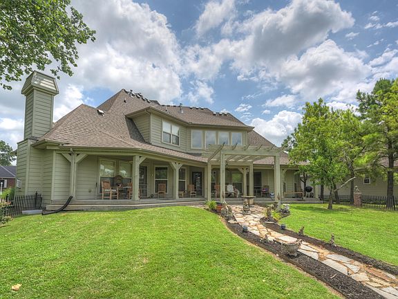French Country Style on the lake. Master suite on main level, opens to wrap around covered porch overlooking lake, exceptional kitchen with gourmet range, separate dinging room, living room with 18 ft beamed ceilings, 3 fireplaces, family room plus bonus room.