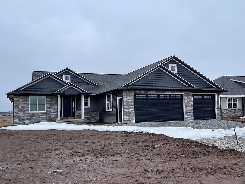 This brand new Belfield Model, with walk out lower level has all the amenities you are looking for. This open concept home welcomes you with its high cathedral ceiling. It also has a large great room and a full appliance kitchen with high quality finishing touches. You will find a designated dining area integrated into the open concept. The main level has a split bedroom plan. The master has a nice sized bathroom and a walk-in closet. Two other bedrooms complete the first level with their own bathroom. There is also a convenient half bath combined with a first floor laundry. Estimated completion date is 12/16/2022.