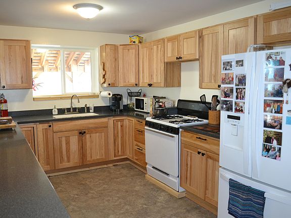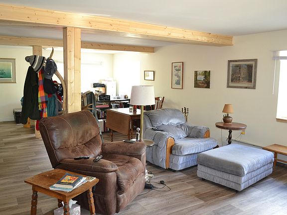 Like new, off-grid home with LOTS of room & light. Master bedroom and bath downstairs plus guest bath, with two large rooms upstairs (one w/ en-suite and deck) as well as a family room & guest bath. Could be split duplex style or used as bed & breakfast. Home has oil/wood burning furnace, six solar panels with inverter & eight batteries, new honda 7000 generator, & a storage barn with living space
