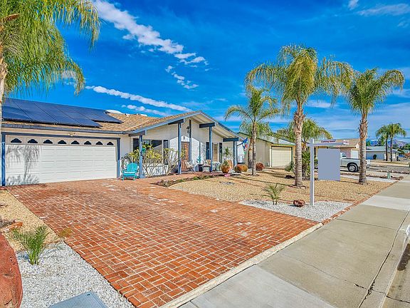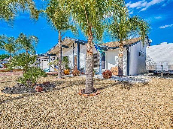TURN-KEY HOME WITH RV PARKING! This 2-Bedroom, 2 Bath home HAS IT All! Nestled on an extra-large lot on a beautiful street, this home is meticulously maintained with numerous UPGRADES making this property one of Sun City's prime real estate opportunities. The drought tolerant exterior landscape in the front allows for extra time for relaxation in the private oasis of the backyard, landscaped with grass for your family pet. Inside, you'll find all the comforts of a modern home to include 6-panel doors, new door casings and baseboards, granite kitchen countertops, fresh interior paint, and a new hot water heater. BUT THAT'S NOT ALL...there is also a completely finished enclosed patio room leading to the back of the property, a waterproof box pre-wired for RV hook-up, and the benefits of solar provided by Phoenix with billing through SunRun without a lease! Located in the Sun City Civic Association in the 55+ Community of Sun City in Menifee, with LOW TAXES, and LOW HOAs, this home is a ONE-OF-A-KIND and truly shows the pride of ownership that you desire. Bring the RV and enjoy!