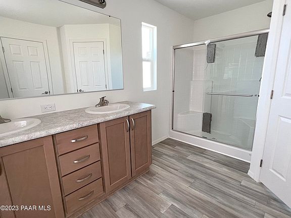 Brand new beautiful home coming soon on level 2 acre lot in one of Paulden's best neighborhoods! Paved roads all but last 300'. Features 4 bedrooms, 2 baths, stainless steel appliances, air conditioning, kitchen island and sliding glass door with large patio off rear to enjoy the views. Backs up to state land! Well produces 30 GPM! Estimated move-in: August.