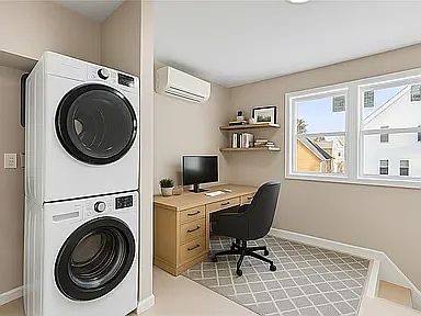 In-unit washer and dryerDishwasher for easy clean-upDedicated officeOpen-concept kitchen with pantry