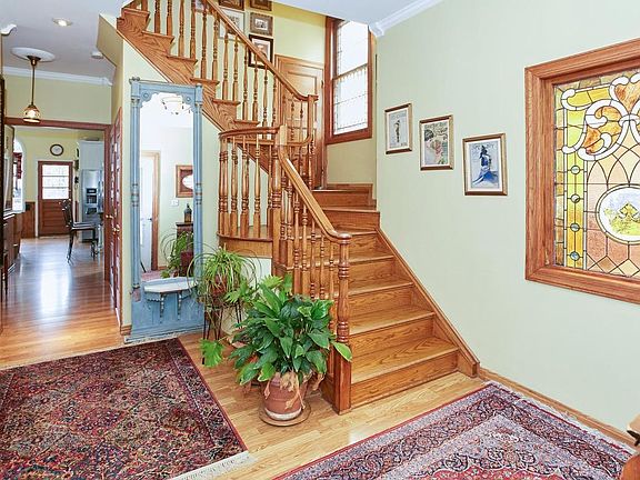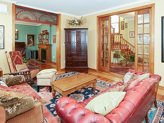 Mansion in size and Townhouse in appointments - Detached One Family, six bedroom, Dutch Colonial home. Enter the elegant foyer with custom stained glass windows and a beautifully designed wood staircase leading to all three floors. French doors open to the living room. An archway of delicate carved wood lattice opens to the formal dining room with fireplace. A second set of French doors lead to the bright and spacious home office. The kitchen is the heart of this home and although its size will accommodate a large family, the room still retains a warm and cozy feel. Modern stainless steel appliances, center island, wood cabinetry, high hat lighting, vaulted tin ceilings, arched windows and family room are what make the functionality of this kitchen so very inviting. Also on this level is a powder room. The second level has three bedrooms and two full baths including a Master Bedroom/Master Bath with steam shower. The third level has three bedrooms and one full bath. Both second and third floors have large rooms, lots of closet space and windows providing amazing natural light. Original detail and recent renovations make this a unique and delightful place to call home! Enter a Mediterranean oasis just by stepping outside your back door. You can relax in solitude on the patio by the brick fireplace /barbecue or entertain family and guests in the spacious yard. The full basement houses a gas boiler and hot water heater, a powder room, and supplies tremendous storage space. Long, private driveway.