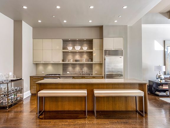 Masterfully renovated, this sleek apartment is outfitted with state of the art appliances and is the pinnacle of modern day living. Upon entering this luxurious open style 1536 square foot apartment, you are immediately greeted by an impressive dining area, soaring 13'5" foot high ceilings, and a grand living room. This stunning loft boasts hardwood floors throughout, 6 oversized windows with electric shades, East exposures, and tremendous light. The exquisitely designed open kitchen is complete with a 9 foot travertine kitchen island, vented stainless steel appliances, and an excess of storage space. The enormous primary bedroom features an abundance of closet space and views of the Empire State Building. The en suite spa-like marble bathroom has polished travertine floors, dual sinks, glass shower, deep soaking tub, and honed brick-style tiling. Currently an extravagant home office with desk and custom bookshelves, the apartment features a convertible second interior bedroom. The second full bathroom has a basket-weave mosaic marble floor and walk-in shower. The apartment is hardwired with a 3-zone Sonos system with surround sound in the living room and Bose speakers. The lighting is controlled by both the Alexa home system and Lutron Caseta switches located throughout the apartment. Originally an old commercial printing house, the Heywood Condominium is a luxury boutique pre-war condominium built in 1914. Converted to condominiums in 2006 and designed by world famous interior designer Shamir Shah, the Heywood is a 50-unit building with 24 hour doorman, full-time super, porter, furnished roof deck, and is close to all that Chelsea has to offer. Neighborhood includes: The High Line, Hudson River Park, Little Island, Chelsea Piers, Hudson Yards, and Chelsea Market. This is a non-smoking building. Pet friendly. This 2 bed 2 bath apt is the exclusive listing of Juliana Frei at Brown Harris Stevens.