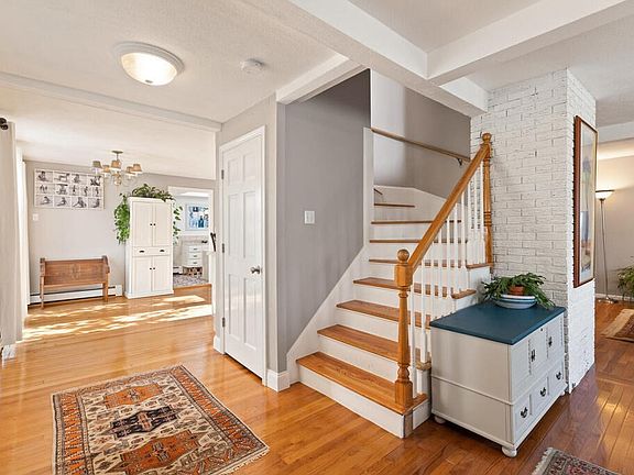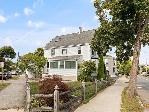 This classic center entrance colonial is a sunny and spacious West side 3-story gem so close to downtown and just two blocks from the commuter rail. Four bedrooms w/ huge walk-in closet in the primary bedroom, four full baths, two bonus rooms. Large eat-in kitchen includes sliding glass doors and new ceiling and fan. Open floor plan LR/DR w/ plenty of sunlight and big front closet. Sun room off the kitchen boasts beautiful new Anderson energy-efficient slider windows. Hardwood floors, many updates including appliances, skylights, windows, cordless day/night cellular shades and Buderus 5-zone boiler system. First floor washer/dryer. Lower-level bonus room has a separate entrance, fridge, washer/dryer, and bath. Third-floor bonus room, w/ cedar-lined walls and plenty of shelving, offers generous space for an office, artist’s studio or extra storage. Corner lot w/ heated 2-car garage, second driveway, private fenced rear yard. Suburban living w/ quick access into Boston. Welcome home!