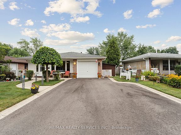 Welcome to 263 Bartley Bull Parkway A rare opportunity to live in a detached bungalow in a quiet, established neighbourhood This charming 2-bedroom, 1-bathroom bungalow sits in the heart of Peel Village, one of Brampton's most sought-after family neighbourhoods. Whether you're a first-time buyer, retiree, or investor, this is your opportunity to own a detached home with tons of potential and all the essentials already in place. Step onto the covered front porch and into a warm, light-filled main floor layout featuring a cozy living room, dining area, and kitchen with direct walkout to a private, fenced backyard. Enjoy summer evenings on the composite deck, surrounded by lush perennials and mature trees. Two garden sheds, including one with power, offer bonus storage. The home offers practical separation between living and sleeping areas with a pocket door, leading to two bedrooms and a full washroom. Downstairs, the spacious basement is a blank canvas ready to be transformed to suit your needs, featuring a versatile room ideal for a guest space, home office, or hobby area, along with a large laundry room, ample storage, and a 120-amp electrical panel. Notable Updates: Furnace (2019),A/C (2019), Roof & Eaves (2019),Windows (2019),Water Heater (2023)Garage Door (2021)Driveway (2024),Fresh Paint (2025). Walking distance to parks, schools, shopping, transit, and just minutes to major highways.