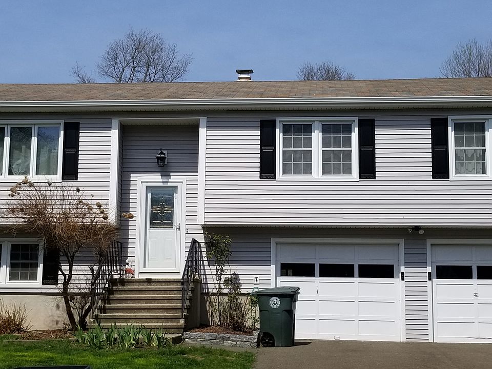 Welcome to this gleaming and sparkling (as the interior has just been painted) 3 bedroom, two full and 1 half-bath home on desirable Baxter Lane! As you enter you'll see a large living room open to the dining room featuring hardwood flooring. The kitchen is completely open to the dining room and has access to the rear deck and private back yard.The kitchen has been updated with stainless appliances and granite counter tops. The yard has already had the Spring clean up done and is now ready for your gardening ideas and plantings. The hall bathroom has been updated and features a granite top vanity with double sinks. The Master Bedroom Suite features a beautiful full bathroom with stall shower. The lower level family room has a fireplace and new carpeting and is perfect for a 2nd gathering space or it can be used as a first floor bedroom if necessary. There is a slider to the rear yard for easy access to the patio. The laundry and half bathroom are on this level. Direct access to the garage is always a bonus in New England weather. This garage has additional storage space too. The rear deck is large and over looks the back yard that is perfect for fun games and celebrations. The closets are generous in this home. This home is move in ready!