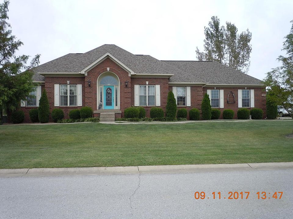 Imagine living in your own personal oasis! This manicured home is situated on a rural cul-du-sac, in prestigious Goeble Crossings subdivision. It has 4 bedrooms and 3 full bathrooms, a 2-1/2 car attached garage, additional parking for several vehicles and lots of upgrades and that's only the beginning. When you walk out the upper or lower deck door, you'll find yourself in a different world. A large Grecian L-shaped swimming pool (3' to 7' depth with waterfall), a large hot tub with sound and aroma therapy, massive outdoor stone fireplace with dry wood storage, a large pergola with fan, a 700-gallon filtered koi pond with beautiful koi fish, and a large selection of mature plants, shrubs, and trees. There's also a 4-acre lake at the back of the property, full of fish! (1/7 of the lake is part of this property). The entire oasis area has automatic path and area lighting, revolving/colored underwater pool lights, sound system and is all contained within a black security perimeter fence. All equipment is fully automatic and on timers. All pool accessories are included, as well as "oasis training" by the current owner. This "oasis" is where memories are made again and again. Great for family fun, exercise, and entertaining guests. Inside this home's spacious main level is an open floor plan with solid red oak hardwood floors. The large family room features vaulted ceilings with ceiling fan and a brick gas log fireplace. The kitchen has been upgraded with granite counters, full tile backsplash, and a deep-well copper sink. Cabinets are rich maple and have adjustable under-and-over LED strip lighting for that special effect. Adjoining the kitchen area is a large dining room, home office, and a washer/dryer closet. The main level has 3 bedrooms and 2 full baths, featuring a spacious master suite with shower and a Jacuzzi garden tub. The lower level features a walkout door to a concrete patio and "The Oasis". Rooms on the lower level include a huge living area currently set up as a home theatre and an art/craft studio; a large home office, a full bedroom/bath and a spacious enclosed home storage area. There is also a utility garage accessible from inside and an overhead door from the outside. Current owners are retired and now downsizing! Call to view this amazing oasis.