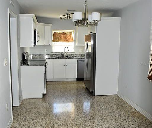 Fully fenced yardGranite countersFlex spaceLarge storage closetScreened patioUpgraded stainless appliancesBrand new white cabinets