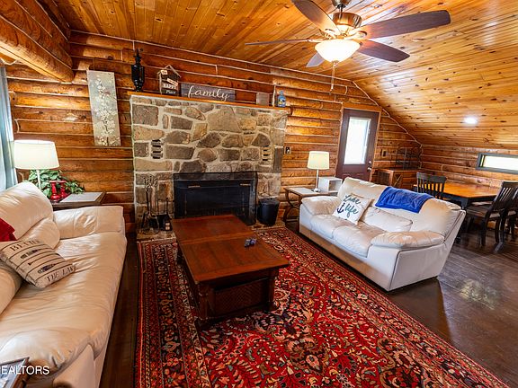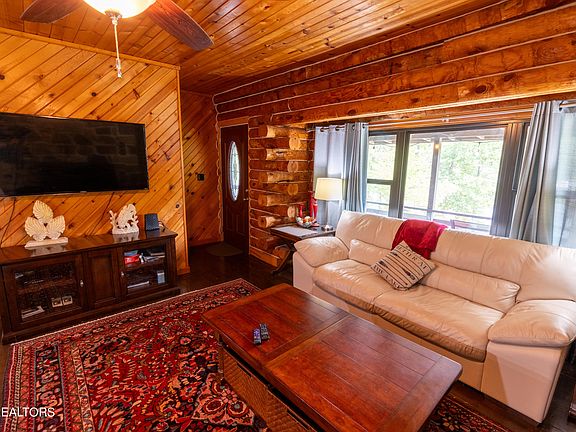 There's spacious living with just over 2,200 square feet of living space, this cozy cabin features 4 bedrooms and 2 full baths, providing ample room for family and guests. The lot is gently sloping, ensuring easy access to the dock and a seamless transition to enjoying the lake. Hop on your boat or spend a relaxing day by the water with ease. In addition to the main living area, the property includes a two-car garage that doubles as an entertaining space. It's a fantastic play area on rainy days, ensuring fun for everyone regardless of the weather. The neighborhood is known for its friendly and welcoming residents, making it a delightful place to relax and enjoy all the area has to offer. Whether you're seeking a second home on Norris Lake or a vacation rental, this log cabin is in pristine condition, ready for you to move in and start creating memories. Enjoy the convenience of being right at Blue Springs Hollow Boat Dock, perfect for boating enthusiasts and those who love spending time on the water. The area offers a wealth of outdoor activities, from fishing and boating on Norris Lake to exploring the natural beauty of the surrounding region. All information provided is deemed reliable but should be independently verified. Request a copy of the proforma for this home it's worth consideration if you are looking for a short term rental!