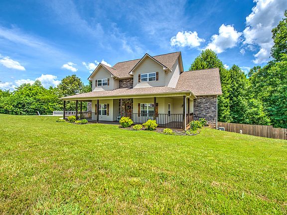 Welcome to Paradise Cove! Stunning, custom built home on 1 acre, with wrap around porch and beautiful views. Conveniently located minutes away from I-75, Norris Lake and Cove Lake State Park. The Owner's Suite is located on the main level, with gorgeous views from the back porch. With a spacious open concept and cathedral ceilings in the Great Room, the main level also has an eat-in kitchen with updated tile flooring and tile backsplash. New paint throughout. The Bonus Room is on the second level and open to the Great Room below. Large, fenced back yard and covered porch provide a wonderful outdoor space. Home also features a 2 car garage and community lake access is less than a mile away! Seller's note in regards to train tracks behind home: The train only comes through sporadically.
