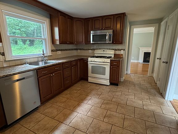Beautiful single-family Colonial home with three bedrooms, 2 1/2 bathrooms for move-in Sept 1st. Recently remodeled kitchen offers new cabinets, counters, appliances and tiled floor. Freshly painted all over and finished flooring. Newer vinyl windows, central air and heat system. Wood floors throughout compliment sunny wall colors. Living room offers a fireplace with an insert and adjoining sunroom. Formal dining room with corner cabinet. Primary bedroom has a private bath with a walk-in shower. There is another full bathroom in the upstairs hallway with a tub/shower combination. Two additional bedrooms, one with a walk up to the attic. Basement has a finished rec room. Great yard for gardeners or play. Large two car garage. 1,478 square feet with an additional 363 sq feet of finishing basement space. Washer/dryer in the basement. Tenant pays for: water/sewer (single bill), gas (heating source), electricity and internet. Trash pick-up is free for tenants and covered in town taxes paid by the owner. Year lease. First month's rent, last month's rent, 50% of one month's rent for security for move-in. Credit and background check required. No smoking is allowed. A well-behaved pet will be considered for a well qualified tenant. Owner pays for: lawn care and snow removal. Tenant pays for: water/sewer (single bill), gas (heating source), electricity and internet. Year lease. First month's rent, last month's rent and 50% of one month's rent for security