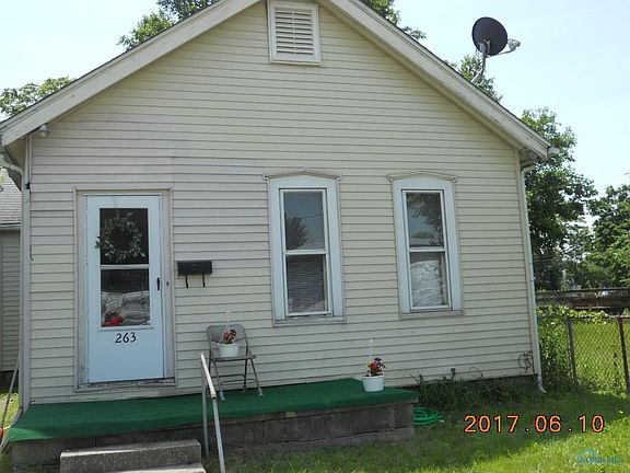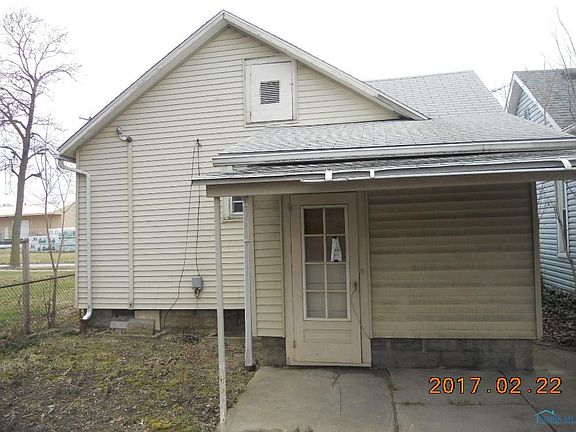 2 bed,869sqft,vinyl sided,1 story home-rearranged int--liv room is the master bedroom, formal dining room(big formal dining is the liv rm), kitchen is the eat-in kitchen, and 1 more small bedroom on the 1st floor. Basement(not finished), furnace is modern but needs to be replaced(parts missing), newer plumbing/elect & roof good, no garage-- parking in the street or the back yard from the alley.