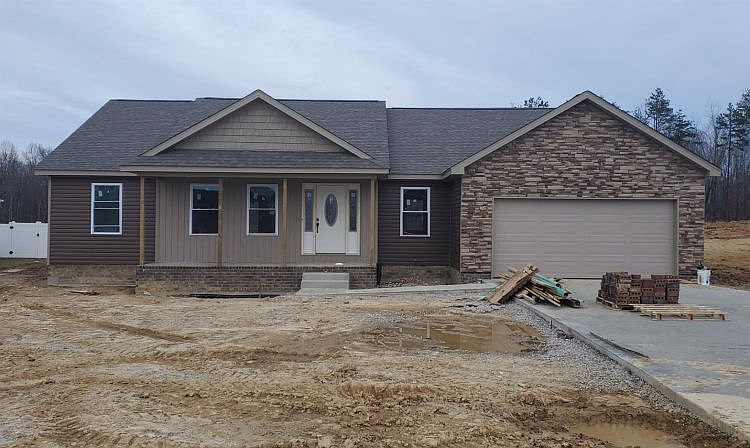 This under construction home is located in London's newest community, Elk Run Estates. This new construction features 3 bedrooms and 2 baths. This home has an open concept with cathedral ceilings, hardwood floors, ceramic tile in both bathrooms and a large utility room. Utilities include city sewer and water.