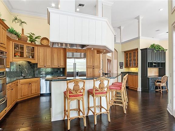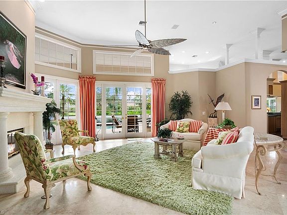 H7751 Beautiful golf course home on an oversized .45-acre estate lot in North Naples coveted “Audubon Golf & Country Club!” Boasts Southeast exposure for gorgeous natural light on your screened pool/lanai. This 4,122 sq ft. home is finely appointed with 3 bedrooms + den, 2-car garage with 3rd stall for golf cart, NEW ROOF IN 2021, & electric & manual shutters. This light & bright property offers soaring high 18 ft volume ceilings, travertine marble, & ample storage throughout. Chef’s kitchen features granite counters, new Sub-Zero fridge, all stainless-steel appliances, double sink & a breakfast bar. Fantastic outdoor patio with an expansive pool deck, pool/spa, outdoor kitchen area & fireplace. Spacious master suite includes dual walk-in closets & a large bathroom with triple vanities, separate shower & tub & a dramatic peaked wood paneled ceiling accent. Furnishings are negotiable. Audubon is perfectly located 5-minutes from Mercato & world-class beaches, with gated/guarded entry, 18-hole championship Golf Course, tennis, pickleball, Bayside boardwalk, newly renovated clubhouse with dining & 2nd brand-new spectacular poolside club & café.