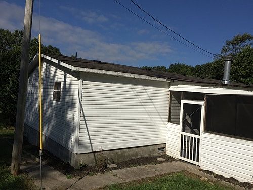 Beautifully refurbished home on 1.6 acres, split bedroom design with semi open floor plan. Huge eat in kitchen with new vinyl flooring, raised top breakfast bar, lots of cabinets and breakfast nook. Large living room with fireplace and new laminate flooring, large master bedroom with en-suite bathroom with garden tub, walk in shower. 2 additional guest bedrooms with guest bathroom. Screened porch on rear and additional storage rooms. Detached storage shed on property. All this on private level 1.6 acres