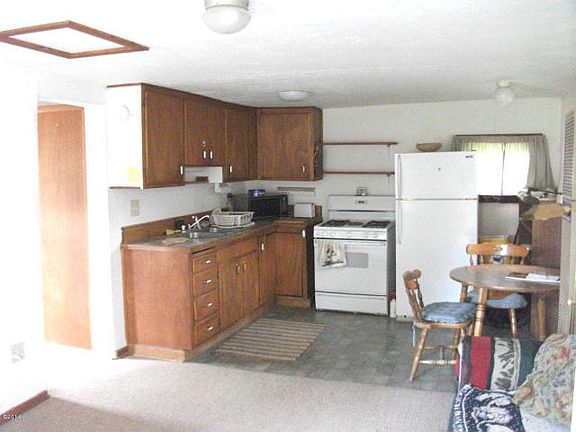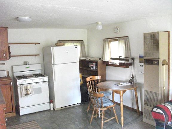 Near Glacier National Park, this cute, cabin-style 1 bedroom, 1 bath home sits on 2 adjoining lots. RV hook-up connects to septic and water. Fenced yard with established lawn and mature trees.