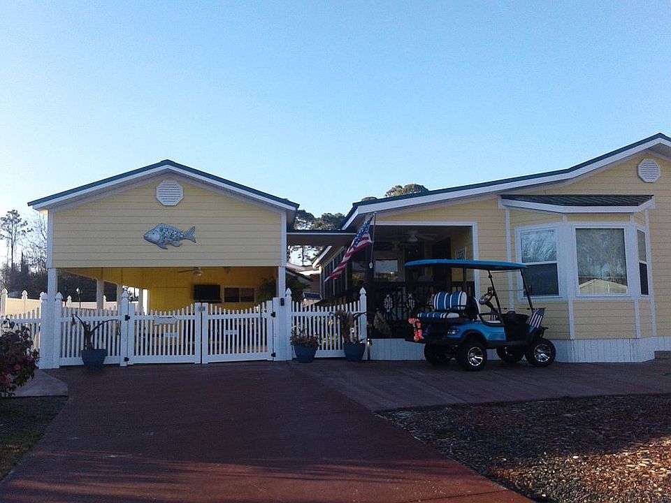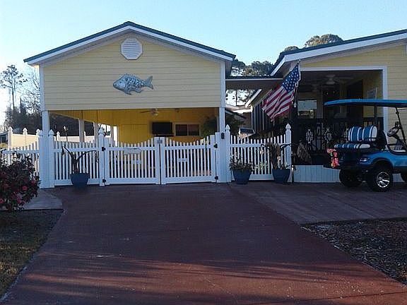 Beautiful, spacious, clean 2 bedroom/2 bathroom in main house. Large master bedroom and living room (which is the addition). This is a park model home with a very spacious, vaulted ceiling, well-built addition. Metal roof. Electric gate. 2 LOTS completely fenced in. Central heat/air. New hot water heater. 2 outbuildings: 1) large storage room. 2) cute guest house with full bath/shower, twin bed and W/D.. Home in Spanish Cove with great amenities - year-round swimming pool, tennis, 2 clubhouses, pier on Perdido Bay, lots of activities always happening. HOA $209 quarterly. Great place to live or make a second home. Near Foley AL and Pensacola and best of all 20 minutes to the beach!! Low taxes in AL. MUST SEE!! Sq. Footage to be verified by buyer. $175,000 furnished $170,000 unfurnished. ,