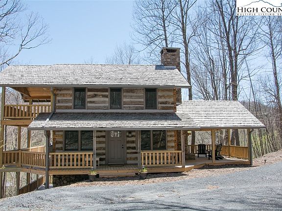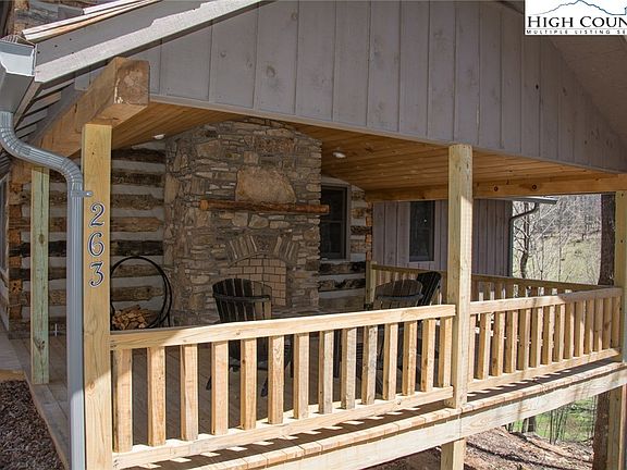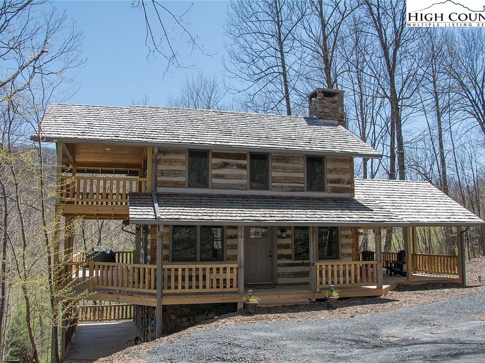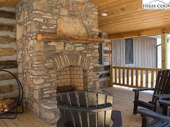 LIKE NEW STONEBRIDGE CABIN WITH 3.8 ACRES, VIEWS & 3 FIREPLACES - Main level offers the unique Stonebridge great room with 2-story stone, wood-burning fireplace and wide-plank pine flooring; kitchen with custom-built cabinetry, island with bar seating & storage, granite counter tops and stainless appliances; spacious master bedroom with walk-in closet, deck access and full bath. Loft area overlooks great room below and is suitable for bedroom or study and features private bath and sizeable covered deck. Finished lower level features family room with second stone fireplace with gas logs, third bedroom with walk-in closet & full bath and laundry closet. Lower level deck can be accessed from family room or bedroom. If you enjoy being outdoors, you will love the large covered porch featuring the third stone fireplace! Offers mountain and pastoral views.