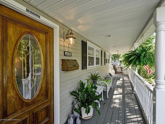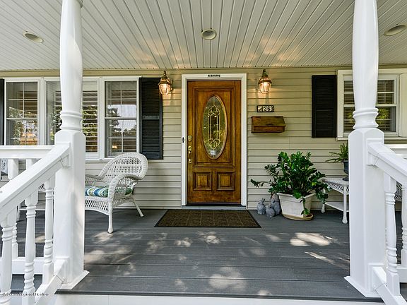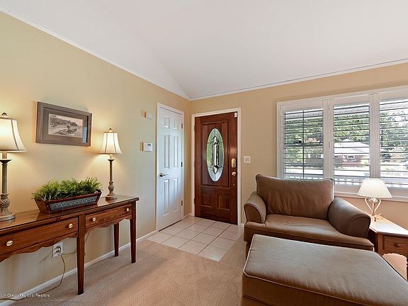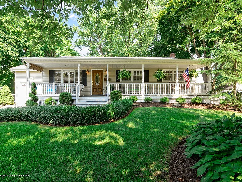 Lovingly, well cared for ranch offering recessed lighting and hardwood flooring throughout; Brand new roof; Living Room with hardwood floor under carpeting, Large Kitchen with stainless steel appliances & sliders and Dining Room with sliders have 12 Foot, Vaulted Ceilings; finished basement with full bathroom and wood burning stove; Full Front Porch 42' x 6' recently renovated with no maintenance Trex Decking. Cement Driveway lined with Belgian Block Curbing; two tiered wood deck in rear overlooking private backyard; Lot 78' x 128'. Close to area schools and NYC transportation-ferry, bus & train. Minutes to Jersey Shore Beaches, waterfront restaurants and shopping. HSA Home Warranty Included! Make your appointment for private viewing today!