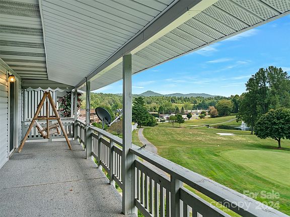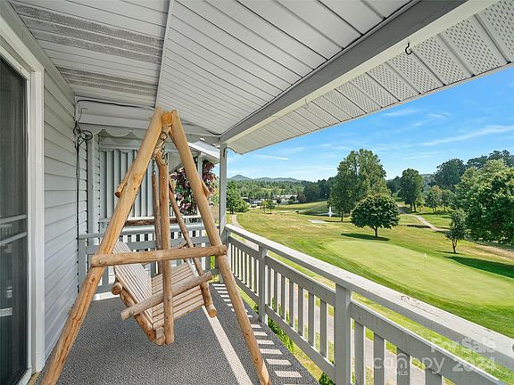 This inviting home features two spacious bedrooms, including a luxurious primary suite with access to the rear deck, perfect for enjoying tranquil mornings and breathtaking views. The residence boasts two full baths (updated with tile walk-in showers), ensuring ample comfort and convenience. Overlooking a lush golf course, it offers stunning year-round mountain vistas that enhance its serene setting. Modern updates include new kitchen counters, track lighting & subway tile backsplash, recently replaced refrigerator, range & built-in microwave/exhaust hood, newer heat pump and a charming stand-alone propane fireplace, adding efficiency and warmth. The open concept floorplan seamlessly connects the large, airy rooms, creating an ideal space for entertaining and everyday living. Conveniently located near the scenic Blue Ridge Parkway, this home combines comfort, style, and natural beauty in a harmonious blend.