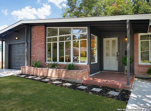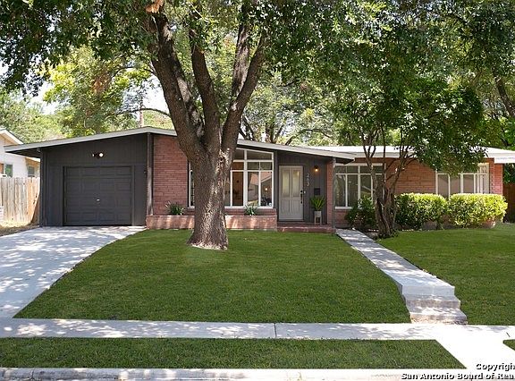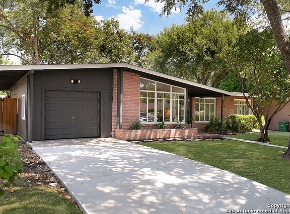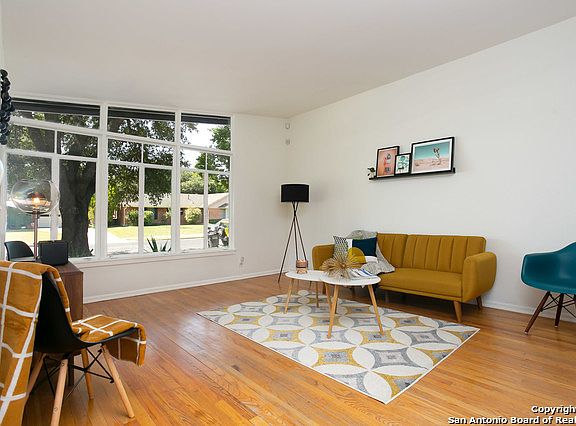 A glance at the exterior of this home reveals that here is a house you can be proud to own! A smart mid century modern appeal, simple in exterior design. Once inside, you will find original hard wood flooring throughout, a substantial amount of natural lighting from the mid century era windows, a vaulted ceiling design, granite counter tops and unlimited storage options. A flex bonus space is offered, which can be used as an office or a studio. Convenient to the Medical Center, USAA, UTSA, Downtown & more!