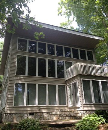 This home has garage, floor to ceiling windows, HVAC, wood floors & paved access! Located minutes from town, yet you feel private and secluded. located at the end of the road with cul-de-sac turn around, city water, and large master bath with double vanity. This one is perfect for your mountain getaway!