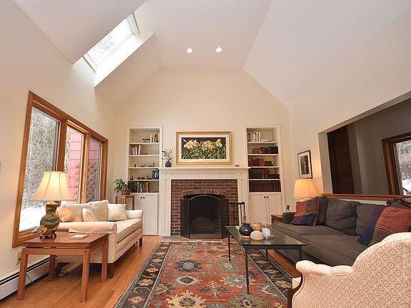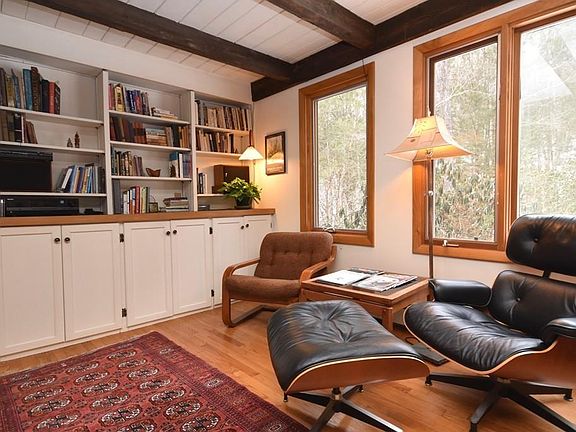 Not available for sale since 1972, this lovely post and beam home is sited next to the Scarboro Brook on a scenic stretch of Gulf Road. This unique home could not be built today in this location and is an unusual find so close to downtown Amherst and local conveniences. Quietly sited on 3.8 acres there are exposed beams, wood floors, living room with cathedral ceilings and cozy fireplace, built-in library shelving, sun-room, updated kitchen (2015), outdoor sauna, and a beautiful wall of windows that brings the outside in. The oversized 2-car garage has pull-down stairs with storage above. The septic system was completely redesigned and updated in 2013 and the owner has installed a new well, upgraded the electrical service, and meticulously maintained the home over the years. This property will appeal to writers, artists, and those who want to live close to nature -- it's a rare find in today's market. Call today to schedule a showing and be embraced by all this property has to offer.