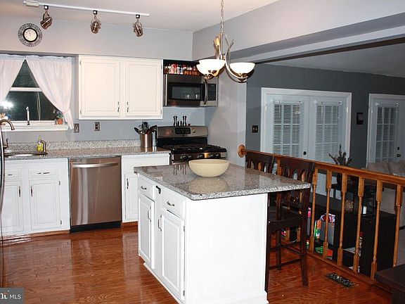 This stunning Open Floor plan will WOW you! The Great Room addition has cathedral ceilings, skylights, a beautiful gas fireplace and features abundant light from 4 sets of French Doors. The Kitchen overlooks the Great Room and has granite counter-tops, stainless steel appliances, a 5-burner gas stove, Breakfast Island, Wood Floors and a large double pantry. Other features include a Library/Office with built-in shelves and wood flooring, a large Dining Room,Huge Master Suite with walk-in closet and newly remodeled bath, large Laundry room, Finished Basement with bar, one car garage with pull-down stair to attic storage, plus a 400+ sq. ft. Deck. Nearby access to walking trail.