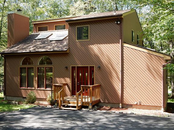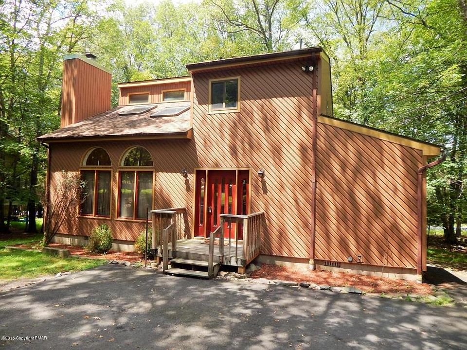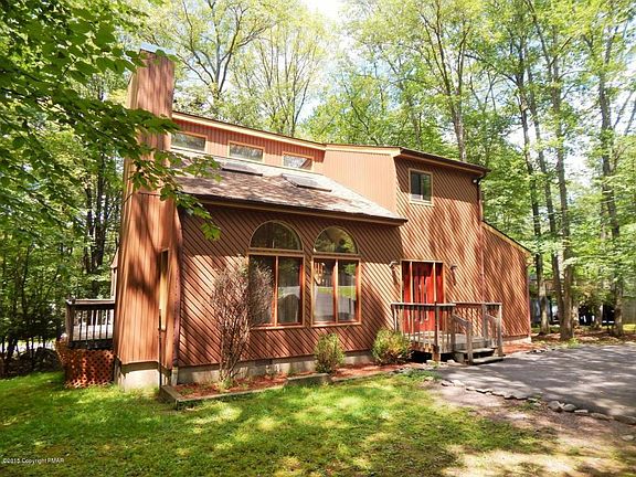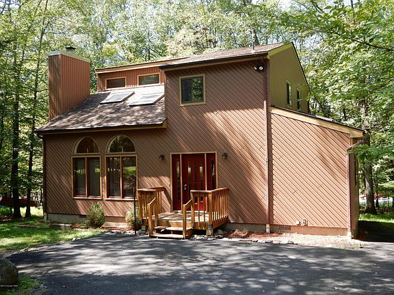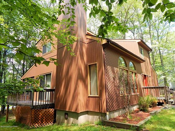 Stroudsburg School District! 3 Bedroom, 2 bath Contemporary with open floor plan and vaulted ceilings. Stone faced fireplace in Living Room. 1st floor Master Bedroom with Master bath complete with jetted tub for two! Bright and cheery loft with skylights. Great working kitchen for the cook in the family! Sliding Glass door leads to large Screened in porch and wraparound deck. Paved driveway. Just minutes to the Library, Mall and Restaurants.