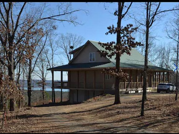 Grand view of the lake! The lake view can be enjoyed from the living room, dining room, kitchen, master bedroom, upstairs loft area, and the extensive covered deck of this house. This home is fully furnished ready to enjoy! It boasts 2 main bedrooms. Adjoining the main bedroom is a huge bath that dreams are made of equipped with separate vanities, Jacuzzi tub and walk in shower big enough for the whole family. Upstairs is the second bedroom and upstairs loft/3rd bedroom with 4 twin beds. The second main bedroom is in basement and has a wet bar and full bathroom. Open kitchen, Living room and dining room are great for large gatherings. To add to the inside space is a covered porch that wraps around the majority of the house.