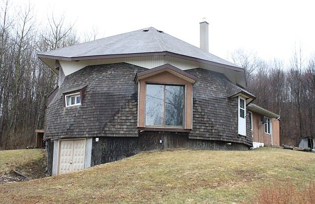 Escape with this Unique Dome-Shaped Residence! This completely private, circular home offers 3 bedrooms and 1 full bath. Sellers lived off the gird in the home for years! Home how features electric and propane in addition to wood heat. Find peace and contentment on the 39 acres this home is situated on. Oil, gas, and mineral rights are currently unleased and seller is conveying them to the buyer. Property features a pole building with electric, and a stocked 2+/- acre pond with is out of sight. Great hunting! Wildlife galore!